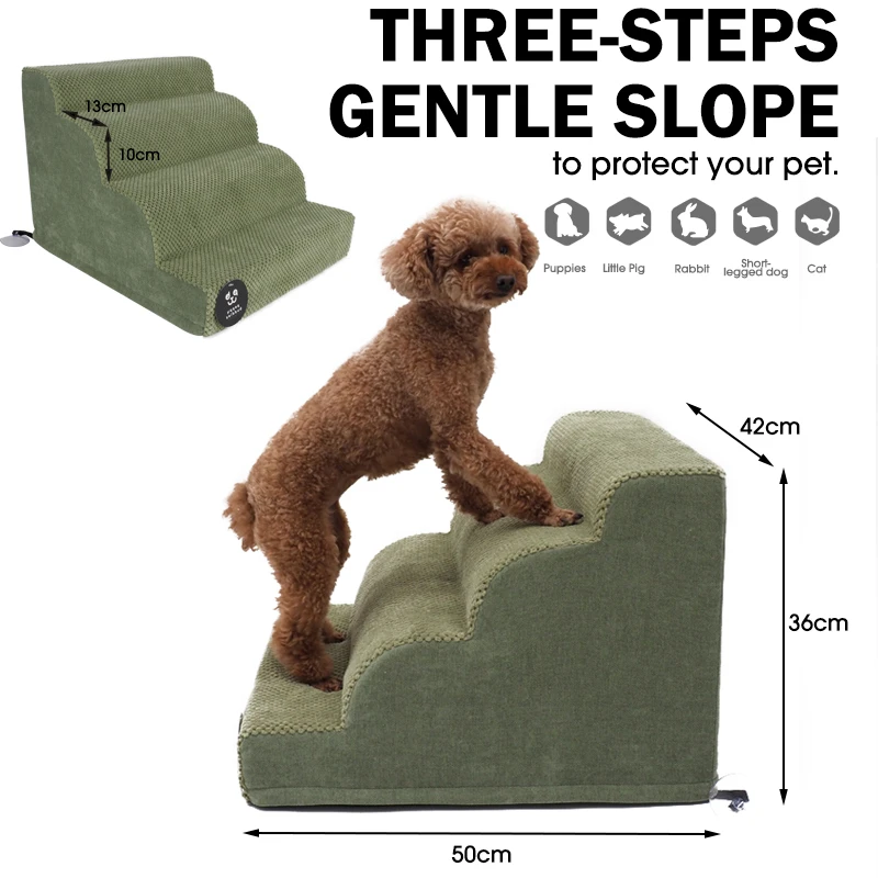 High Density Foam Dog Stairs 3 Step Non Slip Pet Steps for Senior Injured Dogs with Joint Pain Portable Ramp Ladder